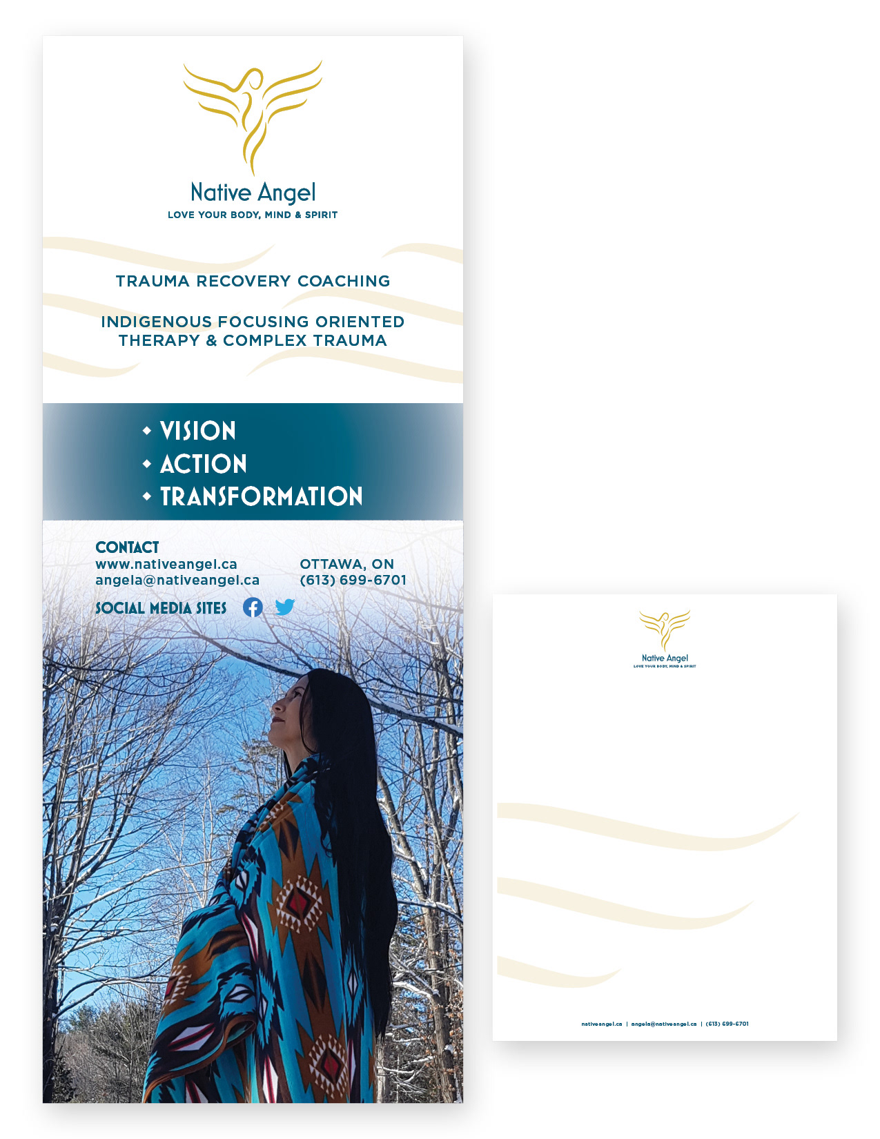 Banner and letterhead design for indigenous trauma therapist. Partial logo design. Photo supplied by client.